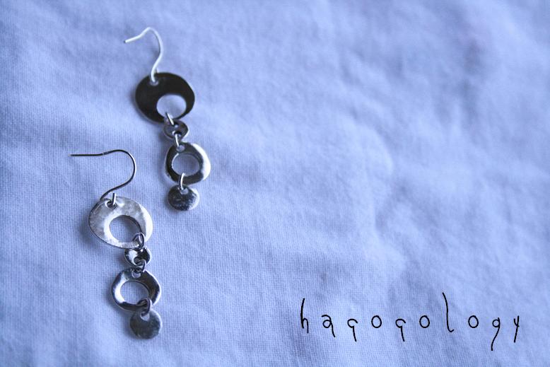 色んな大きさの輪を繋げたピアス。 税込み2100円也 使う素材にもよりますが、 ピアスは大体これくらいのお値段です。