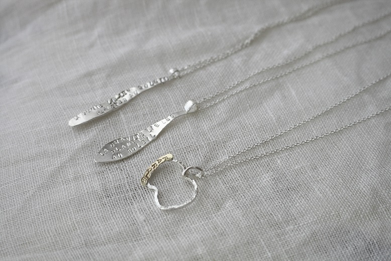 10月に入り、朝晩が肌寒くなってきました。 あの猛烈に暑かった夏がウソのようです。 さて! 久しぶりに作品の写真を♪ 文字を刻印したペンダントトップです。 鎚で叩いて自然な歪みを出しています。 好きな言葉を入れることができるので、 刻印を入れる作品作りは教室でも人気です(^^)