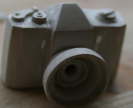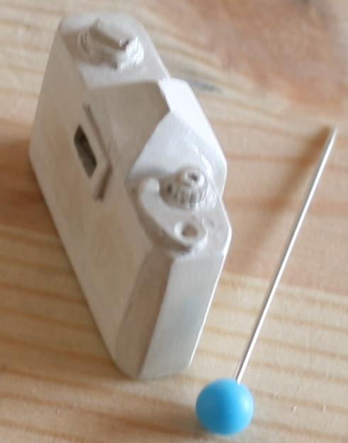 大きさはこれくらい。分かりやすくマチ針と並べてみました。こちらはまだ完成前の写真。いつか作ろうと思っていたカメラ。かなり妥協した。これほど難しいとは。大きさは2cm。完成品の写真は後日。