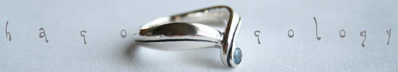 13号 リング。 削り出しのラインを燻してあります。 石はアクアマリン。 削り出しのラインは後ろで交差しています。 (2本のラインが後ろで絡んでいます)